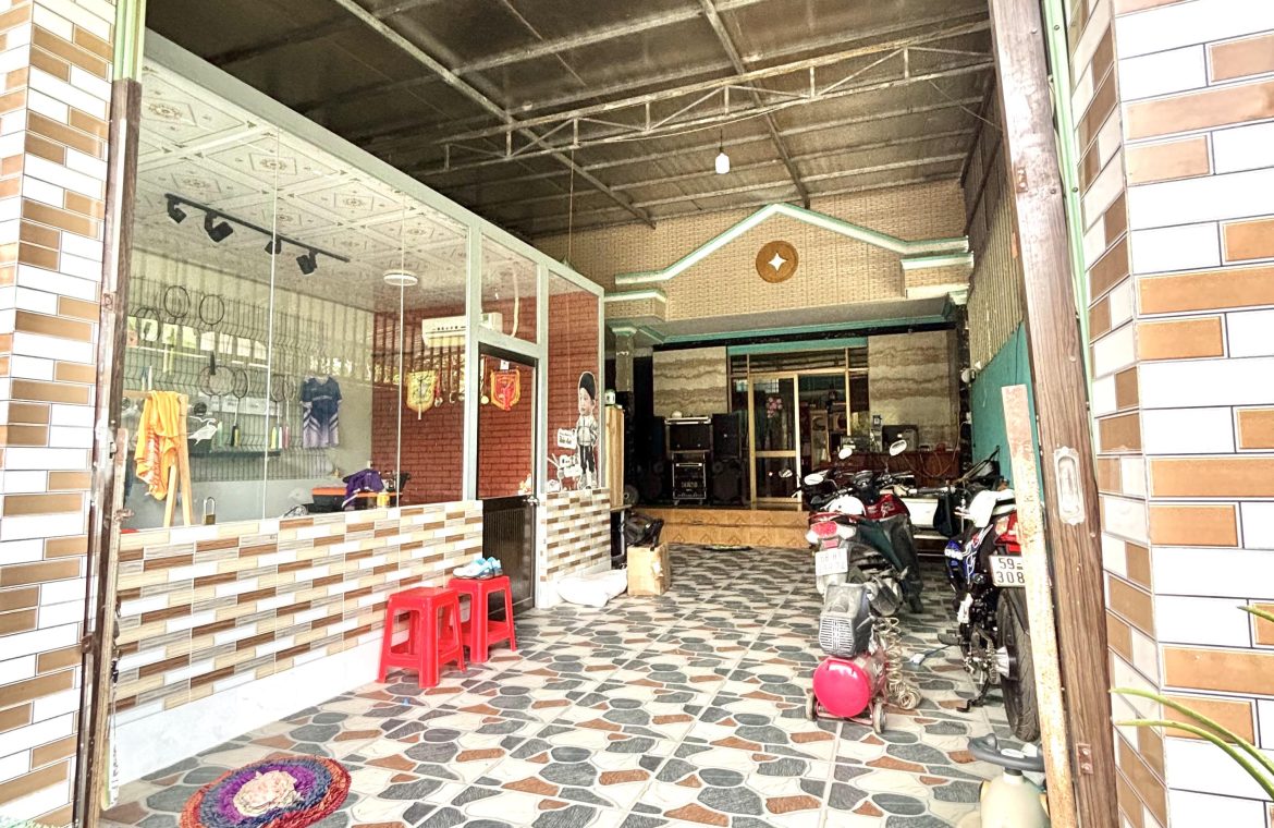 Căn nhà tọa lạc trong khu dân cư yên tĩnh, sở hữu không gian rộng rãi và công năng sử dụng rất linh hoạt, phù hợp cho nhu cầu vừa ở vừa làm việc hoặc kinh doanh nhỏ. Bên trong nhà gồm một phòng khách thoáng đãng, trần cao, đón ánh sáng tự nhiên tốt, tạo cảm giác mát mẻ và dễ chịu trong sinh hoạt hằng ngày. Không gian nghỉ ngơi được bố trí với ba phòng ngủ riêng biệt, đảm bảo sự riêng tư cho từng thành viên trong gia đình, cùng hai khu toilet thuận tiện, đáp ứng đầy đủ nhu cầu sử dụng. Khu bếp được sắp xếp gọn gàng, thông thoáng, thuận lợi cho việc nấu nướng và sinh hoạt gia đình. Điểm nổi bật của căn nhà là khu kho xưởng kế bên nhà có diện tích rộng, kết cấu chắc chắn, phù hợp làm kho chứa hàng, xưởng sản xuất nhỏ hoặc cải tạo theo nhiều mục đích khác nhau. Ngoài ra, phía sau còn có một mảnh vườn nhỏ xanh mát, trồng cây ăn trái và cây cảnh, mang lại sự cân bằng giữa không gian sống và thiên nhiên, tạo cảm giác yên bình và thoải mái cho gia chủ.