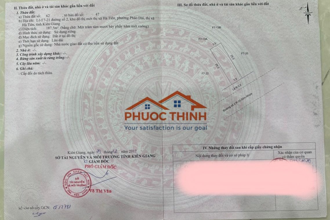 Nền đất F7-21 tọa lạc trên Đường số 2 Khu đô thị mới Hà Tiên, phường Pháo Đài, Tp Hà Tiên, Kiên Giang.