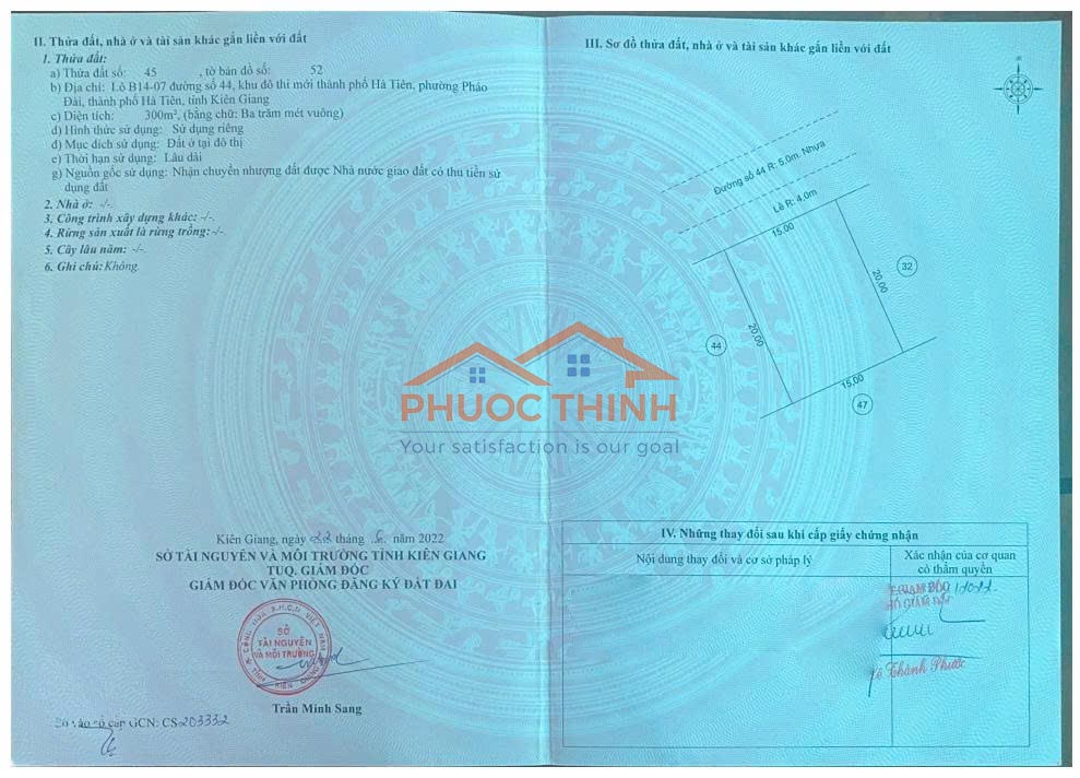 Với diện tích 300m², chiều ngang 15m và chiều dài 20m, nền đất có hình thửa vuông vức, dễ bố trí công năng và rất linh hoạt trong thiết kế. Đây là lợi thế lớn để xây dựng nhà phố, biệt thự sân vườn hoặc công trình kết hợp ở và kinh doanh, đáp ứng đa dạng nhu cầu sử dụng trong dài hạn.